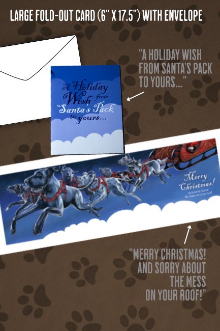 This funny Christmas card imagines an alternate crew for Santa’s Christmas Eve delivery. In my opinion, the Chihuahua is doing most of the work.