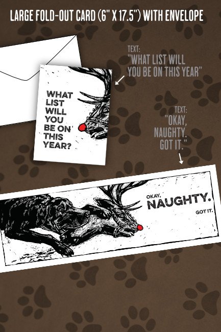 This disturbing Christmas card is a tribute to every dog that wants to be good but just can’t make it happen. I’ve known a few of those dogs!